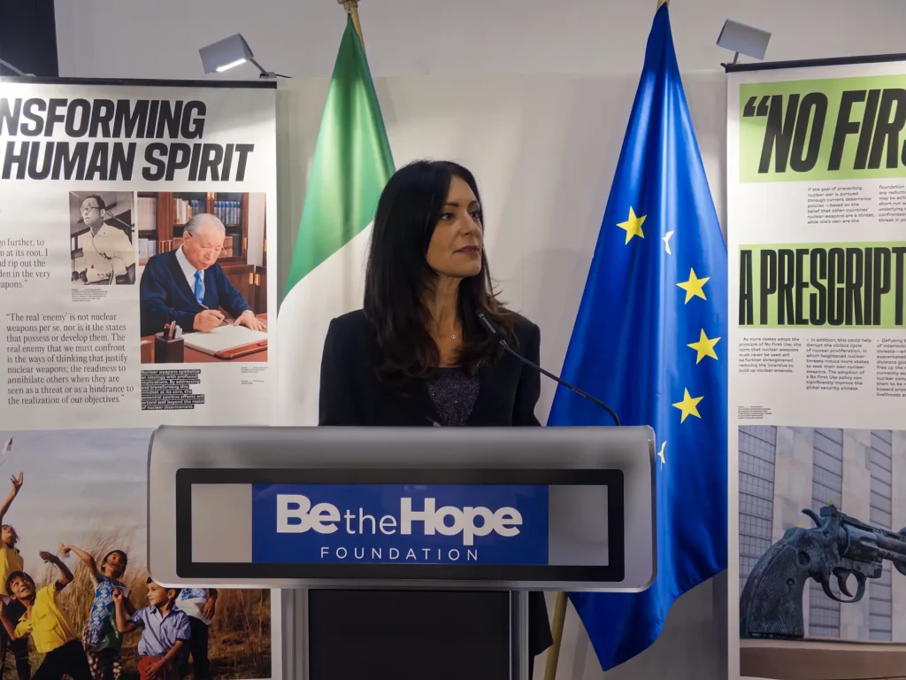 “Daisaku Ikeda, terzo presidente della Soka Gakkai, ha dedicato oltre sessant’anni alla promozione della pace attraverso il dialogo, i diritti umani e il disarmo – ha affermato Roberto Francini, Presidente della Fondazione Be the Hope – Ikeda ha sottolineato che se vogliamo davvero porre fine all’era delle armi nucleari, dobbiamo lottare contro il vero nemico, che non sono né le armi nucleari in sé né gli Stati che le possiedono o le sviluppano, ma piuttosto il modo di pensare che giustifichi l’esistenza di tali armi: la disponibilità ad annientare gli altri quando sono percepiti come una minaccia o un ostacolo alla realizzazione dei nostri desideri. Tra i suoi contributi più costruttivi vi è l’appello a un impegno globale per il “non primo uso” delle armi nucleari. La Fondazione Be The Hope è nata proprio con questa convinzione: che la ricerca della pace inizi dalle persone, individui comuni che scelgono la compassione invece dell’indifferenza, la responsabilità invece della rassegnazione e la speranza invece della paura”.