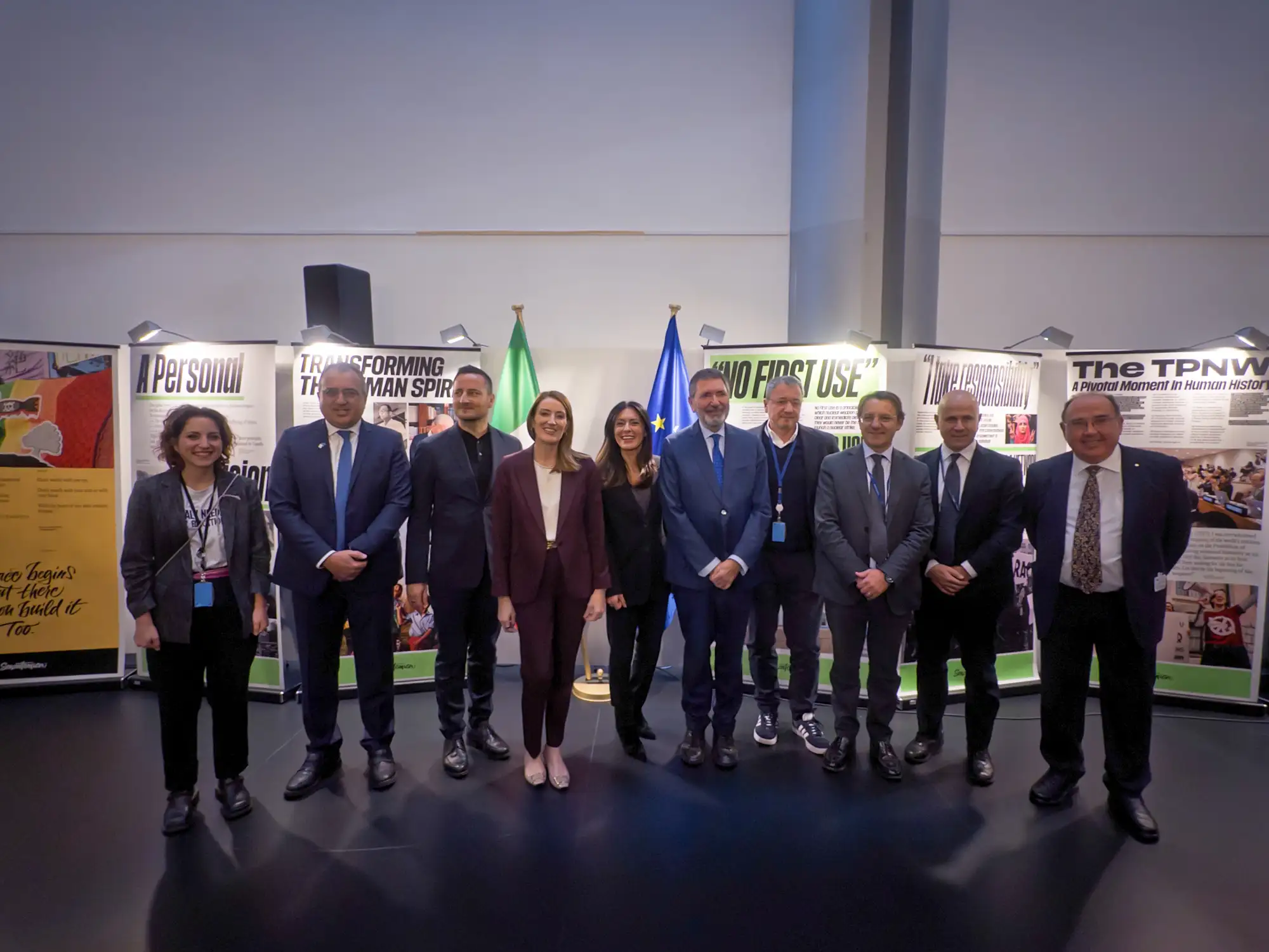 La mostra “Senzatomica. Trasformare lo spirito umano per un mondo libero da armi nucleari”, in occasione della sua centesima tappa, approda al Parlamento Europeo a Strasburgo. Il 25 novembre, durante i giorni della seduta plenaria, l’esposizione è stata inaugurata da Roberta Metsola, presidente del Parlamento Europeo. Sono inoltre intervenuti Pina Picierno, vicepresidente Parlamento Europeo, Ignazio Marino, vicepresidente Green/Efa e di Roberto Francini, presidente della Fondazione Be the Hope.